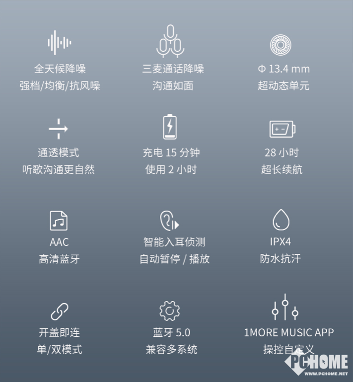 1More ComfoBuds Pro舒适豆降噪版支持最长28小时的续航时间,并且支持IPX4防水功能,日常的运动出汗和小雨天气都无可畏惧。