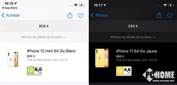 【PChome手机频道资讯报道】苹果的售后维修一直是各大手机厂商的标杆。目前,受相关政策影响,苹果法国官网开始为iPhone及Mac显示可维修性评分(Repair Index)。目前,iPhone 12系列、iPhone 11系列、iPhone SE 2020等iPhone 7系列及以后的机型、2018款以来的MacBook Air以及MacBook Pro均可显示这一评分。