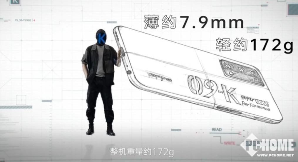 作为K系列的延续,OPPO K9手机延续了轻薄机身加硬核科技的设计思路。外观方面,OPPO K9手机将机身厚度控制在8mm内,整机重量约172g。后盖采用了8道复合工艺,配合50:50黄金配重比机身,配合背面弧面曲率设计,长时间握持更舒适,手感更加圆润。