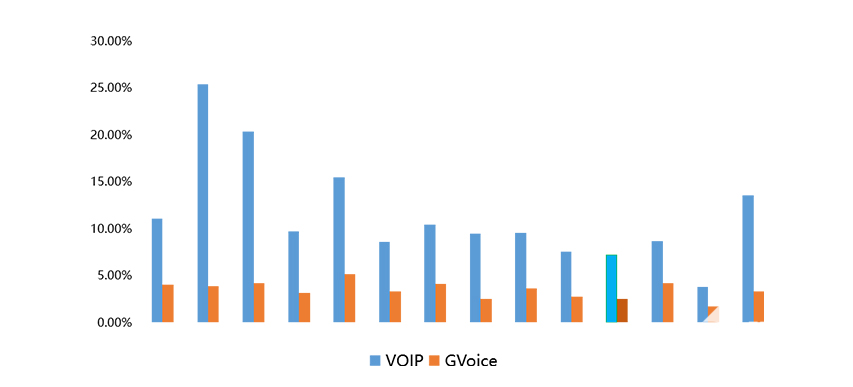 语音算法的首要任务是抑制各种背景噪音与回声。GVoice团队采用循环神经网络降噪算法,针对游戏场景进行了海量训练,取得了比传统通话更加优异的音质表现。传统通话算法的平均杂音时长比例为11.5% ,而GVoice 的平均杂音时长比例为3.4%。同时充分利用高通AI引擎上高通Hexagon DSP超强的AI计算能力,深度定制优化GVoice算法后,降噪,回声消除等算法效果实现了进一步的飞跃。相比于传统的算法,其降噪效果平均提升约10dB左右。