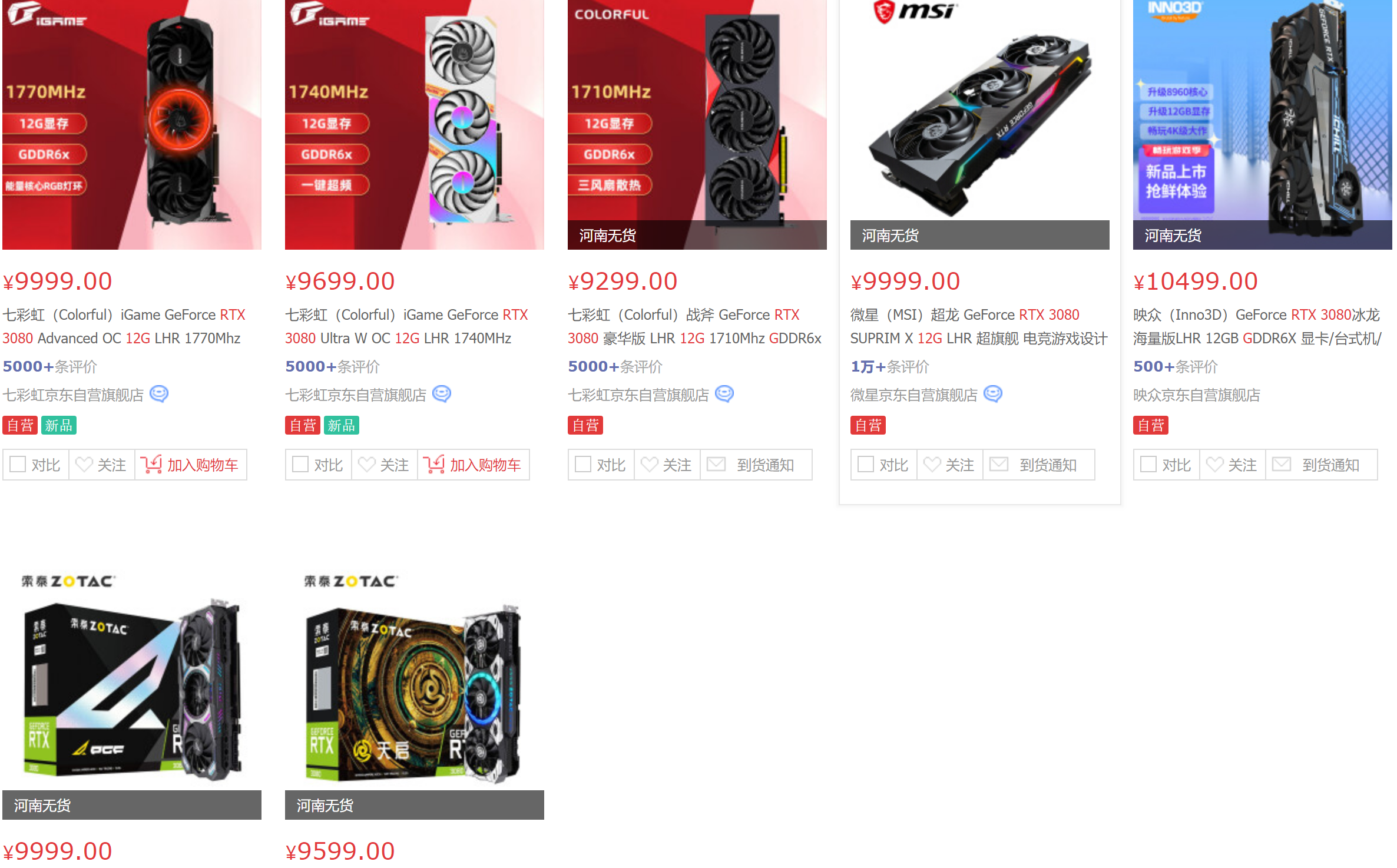 继在CES 2022展会发布了桌面端的RTX 3050显卡之后,NVIDIA在1月11日又发布了RTX 3080 12GB显存版。虽然你目前公版的RTX 3080 12GB显卡的价格还未公布,所以AIC厂商的非公版显卡已经上架,包括七彩虹、微星、映众、索泰等品牌。价格方面,最便宜的9299元,最贵的则要10499元。