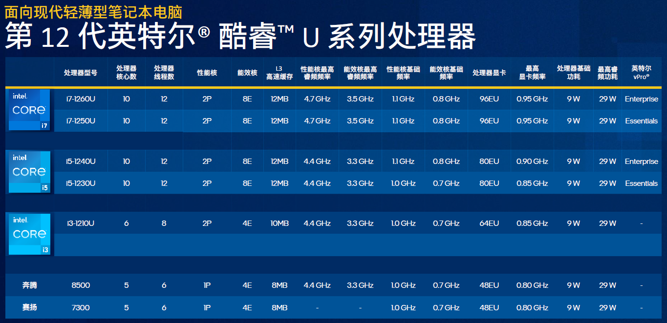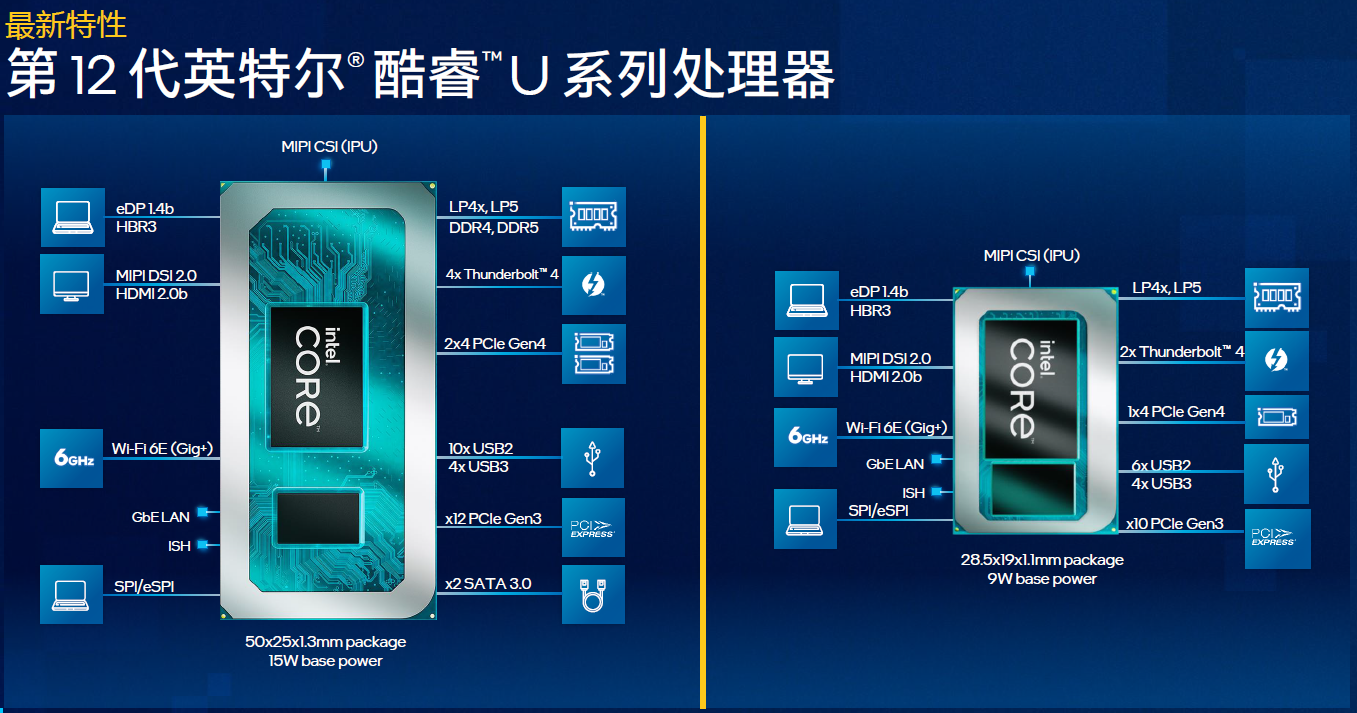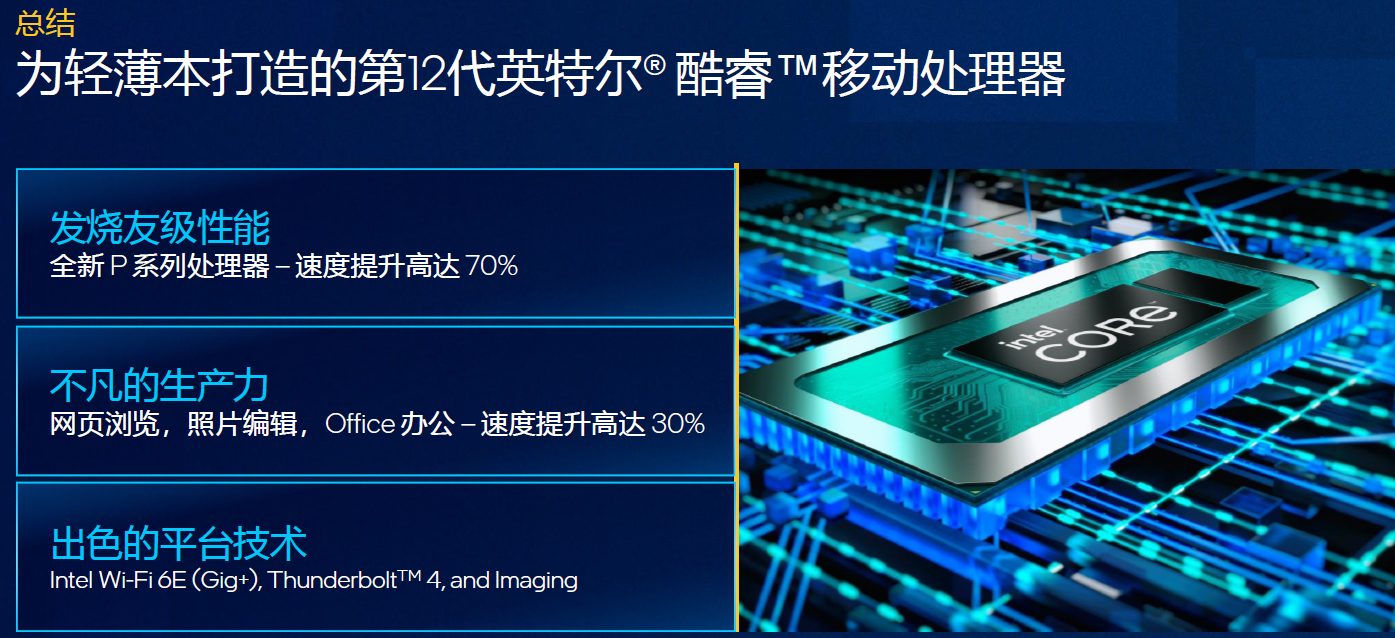 面向轻薄本的全新第12代英特尔酷睿移动处理器主要特性: