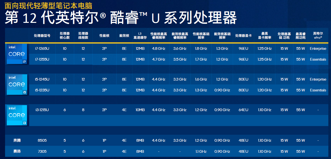 今年初的CES2022展会上,英特尔公布了第12代英特尔酷睿H系列处理器,相应的OEM终端产品也已陆续上市。今天(2月24日)英特尔宣布推出第12代英特尔酷睿P系列和U系列处理器,进一步扩大第12代酷睿移动处理器产品线。
