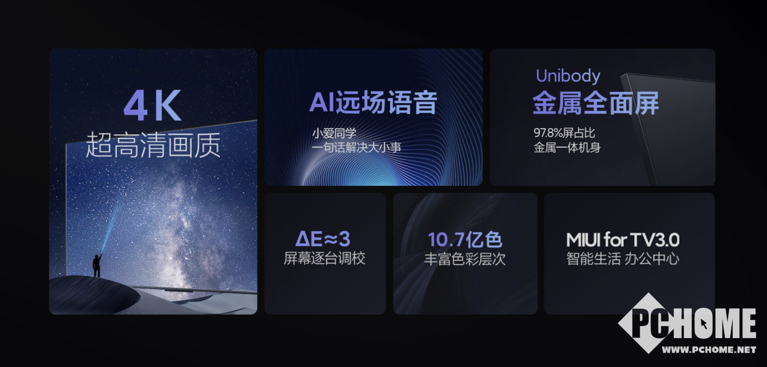 小米电视EA 2022款全系标配了蓝牙遥控器,可以在随意角度进行操作。同时远场语音功能则是可以更为轻松的唤醒小爱同学,执行任何下达的指令。小米电视EA 2022款拥有Delta E3屏幕逐台调校,色准显示效果更加优秀,4K超高清画质加持也让用户拥有更好的观看体验。其内置电视PQ画质引擎,多项画质优化技术对降噪、色彩、清晰度等方面特定增强,暗处噪点更少,使画面色彩更真实还原